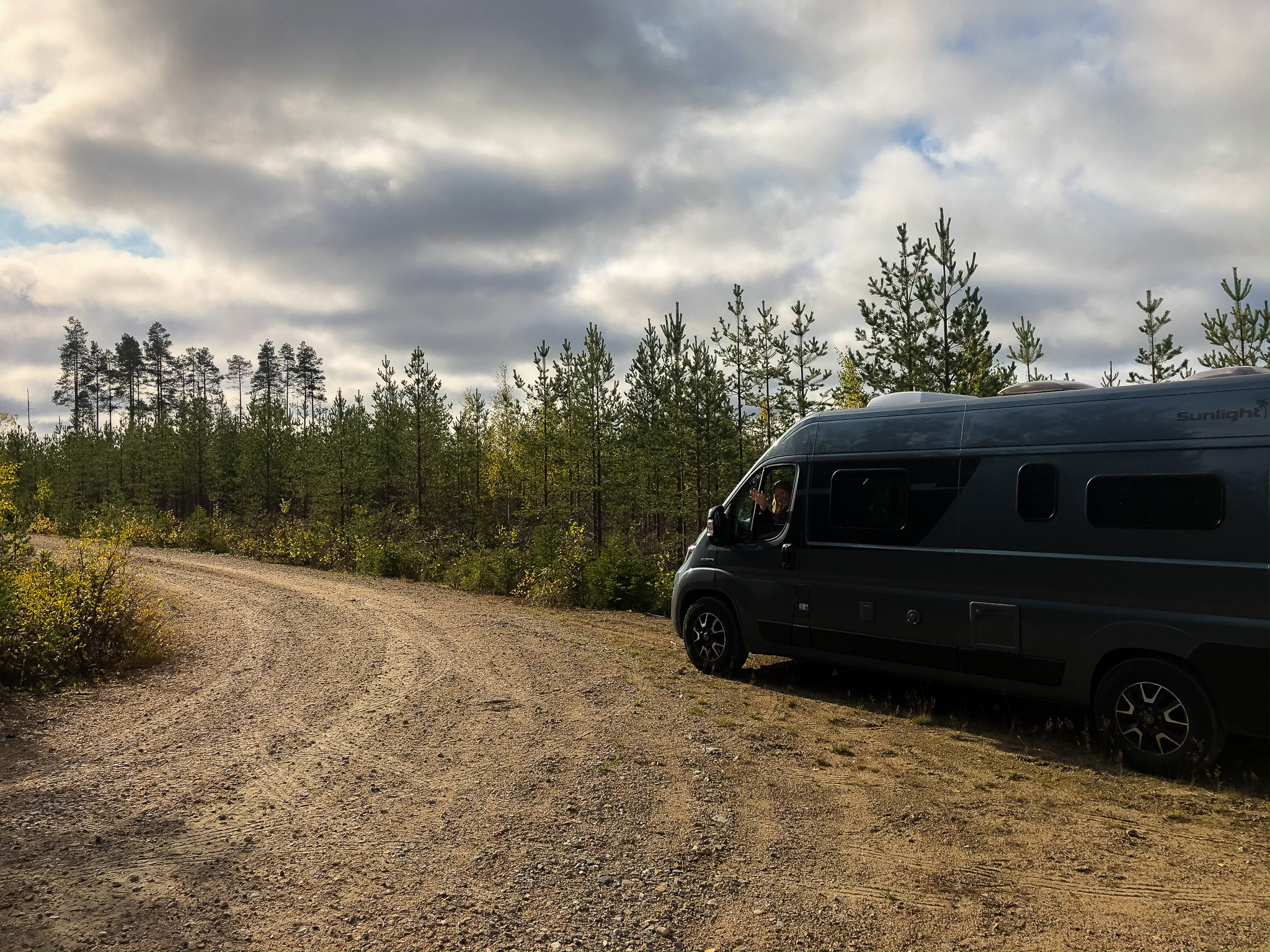 Entwarnung: Heute Morgen ging es ohne Wasserverlust los. Wir haben letzte Nacht geheizt, so ging es nicht nur uns, sondern auch Hirvigo gut. Mit dem beinahe 400 Kilometern entfernten Rovaniemi als Tagesziel hiess es heute erneut: fahren, fahren, fahren… So düsten wir gleich ohne Frühstück los. Unterwegs gönnten wir uns einige Pausen. Unsere Haltestellen waren nicht immer ganz ideal, Andrea hielt unter anderem mitten auf einem Wendeplatz an und bestimmte: «Hier essen wir Frühstück.»
